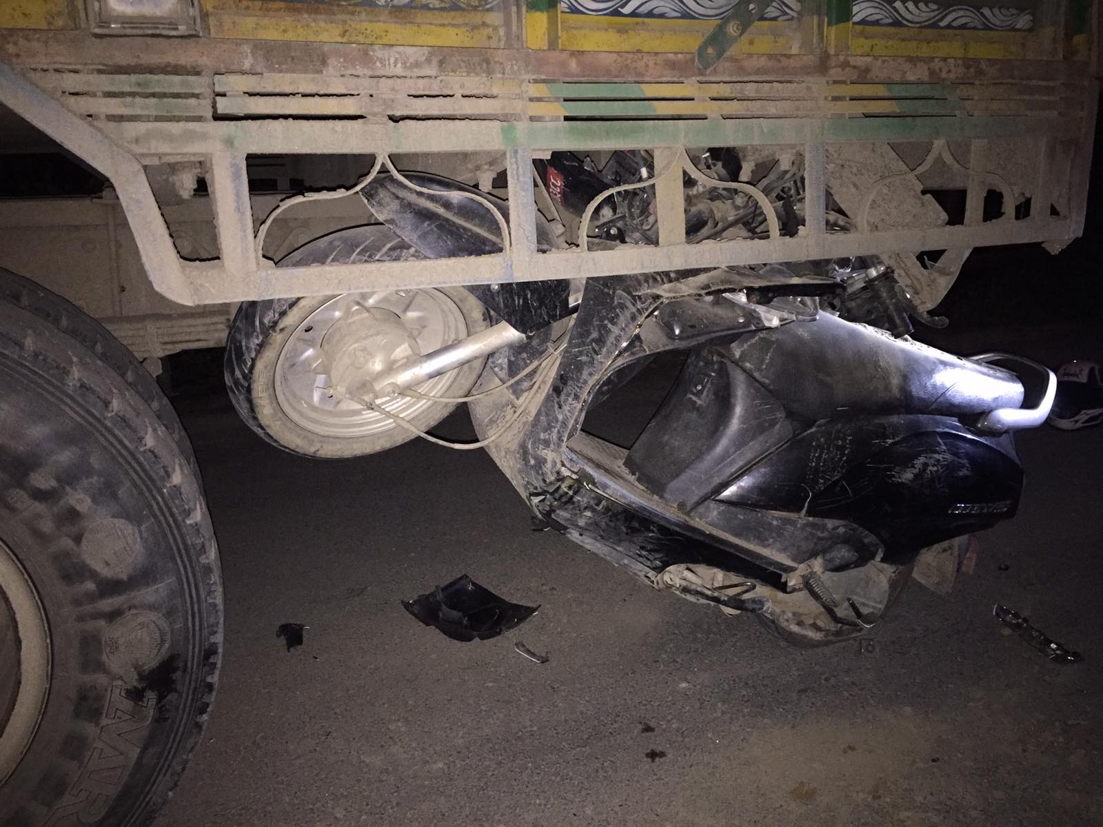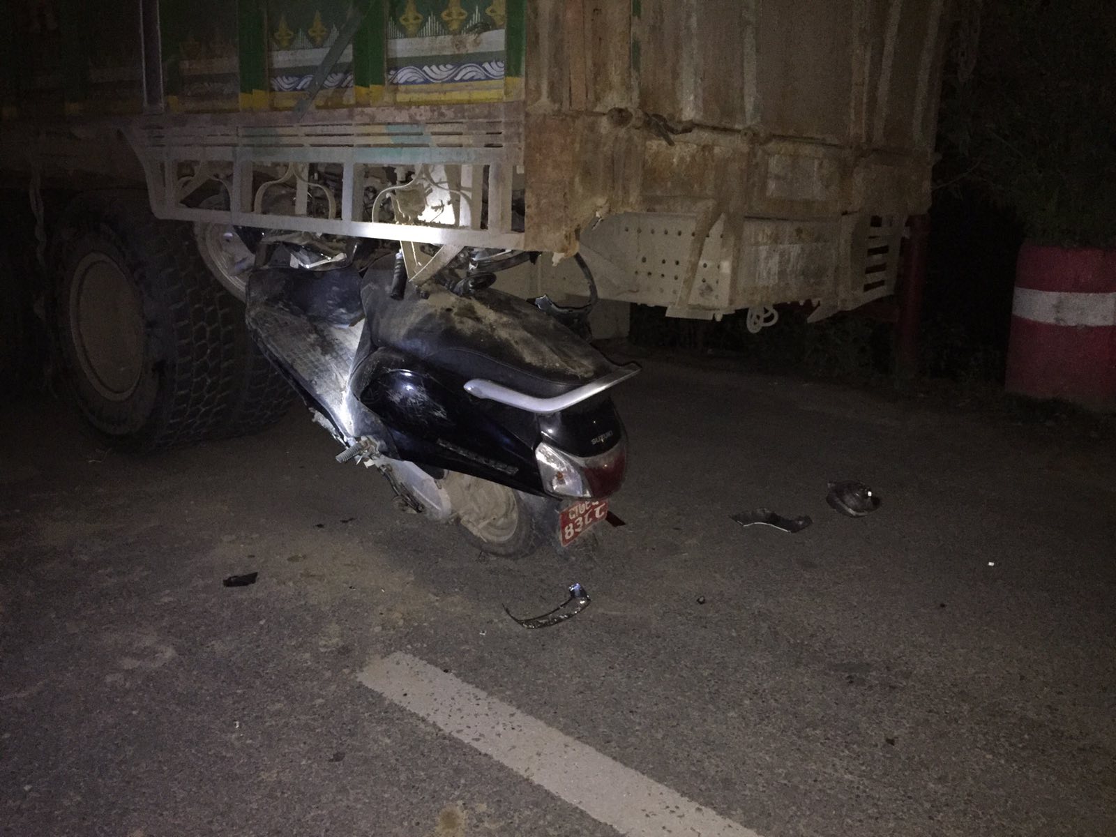 करिडोरमा रोकिराखेको मालबाहक ट्रक मुनि स्कुटर छिर्दा स्कुटर चालक गम्भीर घाइते भएका छन् । सेतोपुल करिडोरमा रोकिराखेको ना ६ ख ५२५३ नम्बरको ट्रक मुनि बा ७८ प ४३८८ नम्बरको स्कुुटर छिरेेेको हो । प्रत्यक्षदर्शीका अनुसार अनामनगर तर्फबाट आएको स्कुटर अनियन्त्रित भई ट्रकमुुनि छिरेको थियो । गम्भीर घाइते भएका स्कुटर चालकलाई अस्पताल लगिएको छ । स्कुटर चालकको पहिचान खुल्न सकेको छैन । ट्रक बिपरित दिशामा रोकिराखेको थियो ।